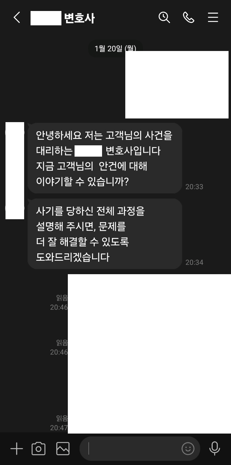 최근 사기 피해를 당한 분들을 대상으로 한 ‘변호사 사칭 사기’가 기승을 부리고 있습니다.