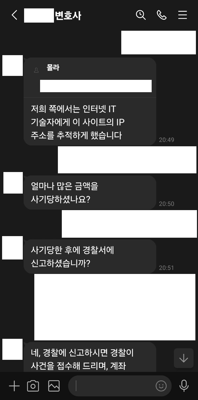 2. 해외 IT팀과 연계되어 있어 사기꾼들의 IP를 추적하여 계좌 동결 및 피해 금액 환수가 가능하다고 속이고