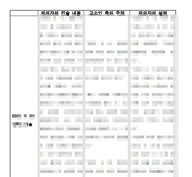 성범죄 사건 또는 성범죄 사건을 원 사건으로 하는 무고 사건은 당사자들만 있는 장소에서 이루어지는 경우가 많기 때문에, 피의자 vs 고소인 식으로 누가 더 신빙성 있게 진술하느냐에서 결과가 판가름 나는 경우가 많습니다. 조서는 대화의 흐름에 따라 기재되기 때문에 비교 분석에 적합하진 않습니다. 따라서 당사자들의 진술 내용을 시기와 쟁점에 따라 비교 분석하는 표를 만들어 우리 측의 진술이 훨씬 1) 일관되고 2) 모순점이 없으며 3) 구체적이고 4) 상식적이라는 점을 부각시켜 주어야 합니다.