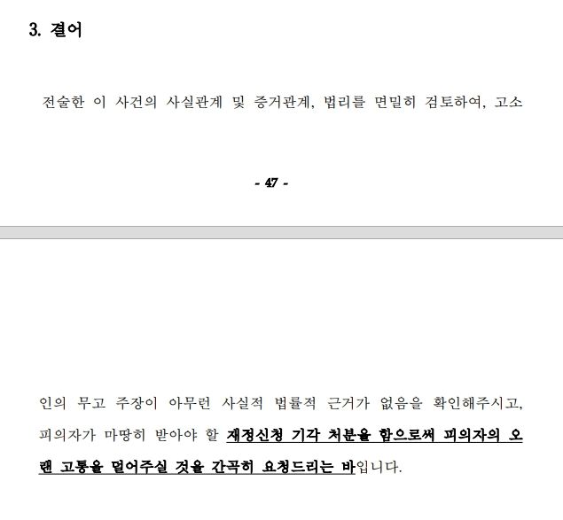 그렇기 때문에 당연히 이의신청이나 항고나 재정신청에 대한 방어를 할 때는, 상대방의 주장을, 상대방의 주장과 동일한 순서로, 1) 객관적인 증거 또는 2) 법령 또는 3) 대법원의 판례를 근거로 들어 구체적이고 확실하게 반박해줄 필요가 있습니다.