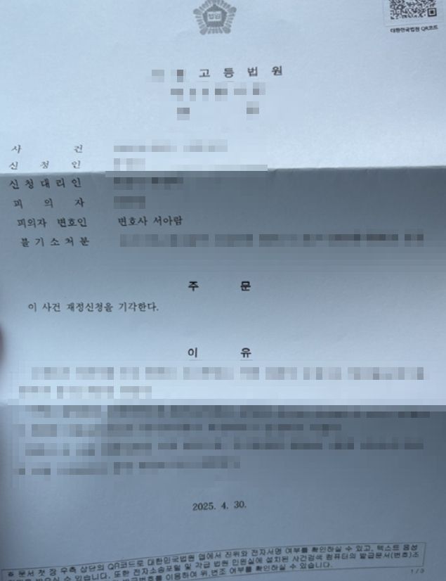 평균적으로 걸리는 기간보다 훨씬 신속하게, 고등법원에서 이의신청기각 결정이 내려졌습니다!