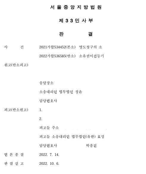 매도인은 결국 본 건 매매계약이 의뢰인의 채무불이행을 이유로 해제되었다고 주장하며 본 건 부동산의 인도를 청구하는 소송을 제기하였습니다.