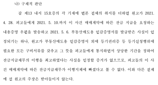 재판부는 이러한 박종진 변호사의 주장을 받아들여 원고인 매도인의 청구를 기각하고, 피고 (반소 원고)인 의뢰인의 청구를 인용하였습니다.