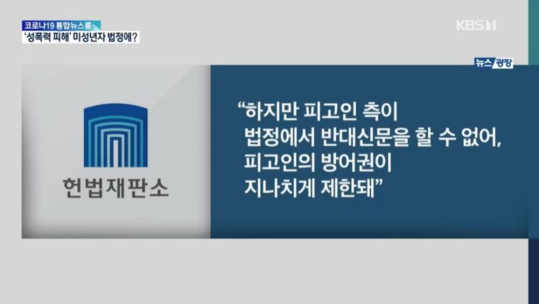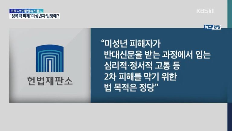 헌법재판소는 미성년 피해자가 법정에서 반대신문을 받는 과정에서 입는 심리적·정서적 고통 등 2차 피해를 막는다는 법 목적은 정당하다고 보았습니다.