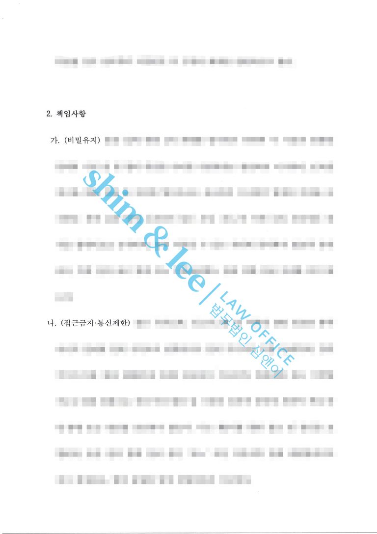 - 또한 의뢰인에게 2차 피해가 발생하지 않도록 하기 위해, ① 공통으로 알고 있는 지인들에게 의뢰인에 대한 언급을 금지하고, ② 함께 참여 중인 모임에서 가해자가 즉시 탈퇴하고 재가입하지 않을 것을 합의서에 명시해 줄 것을 요청하였습니다.