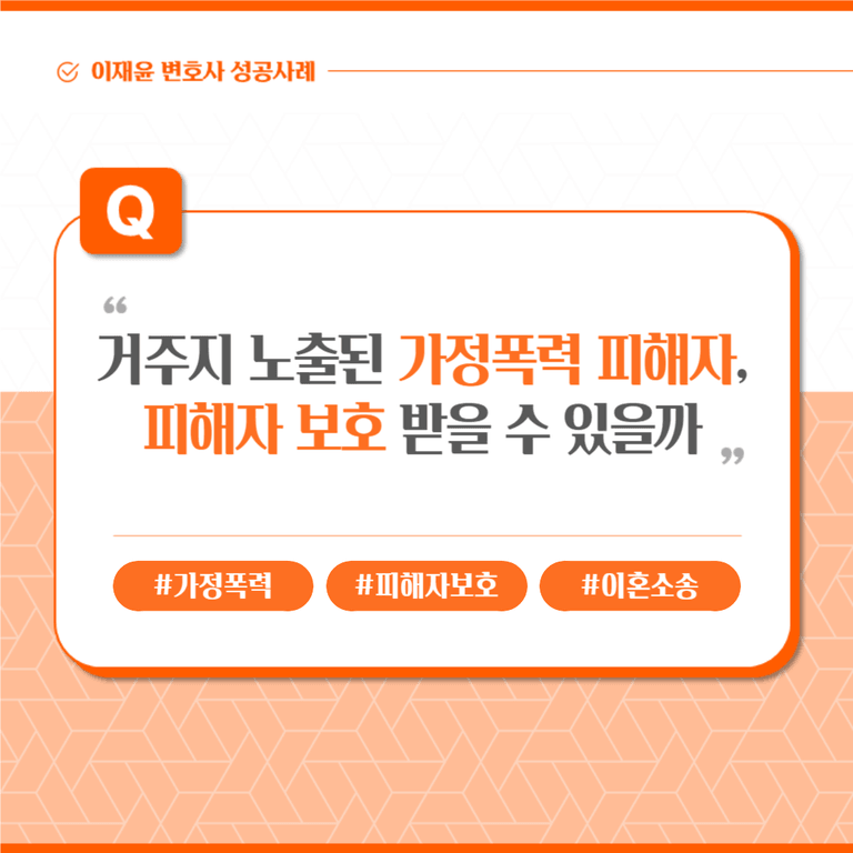 의뢰인은 상대방 명의 아파트에 거주 중이었던바, 거주지가 노출되어 있었으므로 언제든지 상대방이 접근하여 재차 폭행을 행사할 수 있다는 두려움을 느끼고 있었습니다.