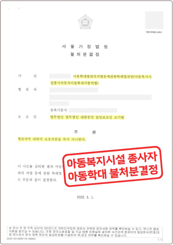 ![[🔶아동학대] 아동복지시설 종사자 정서적 학대 불처분결정](/_next/image?url=https%3A%2F%2Fd2ai3ajp99ywjy.cloudfront.net%2Fuploads%2Ftitleimage%2Foriginal%2F5c4983d59c4c2967af3a5fbc-original.jpg&w=3840&q=75)