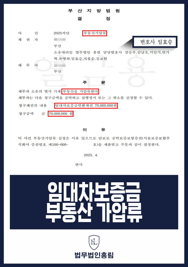 이 결정으로 인해 집주인은 해당 부동산을 타인에게 처분하거나 담보 제공하는 행위가 원천 차단되었으며, 의뢰인 A씨는 안전하게 보증금 회수를 위한 기반을 확보할 수 있었습니다. 임대차보증금 부동산 가압류의 효력을 통해 실질적인 회수 가능성을 높인 대표적인 사례가 되었습니다