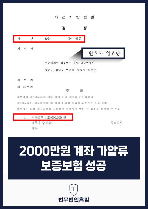 그 결과 법원에서는 본 변호인의 주장을 받아들여 통장 가압류(전액 보증보험)하였습니다.