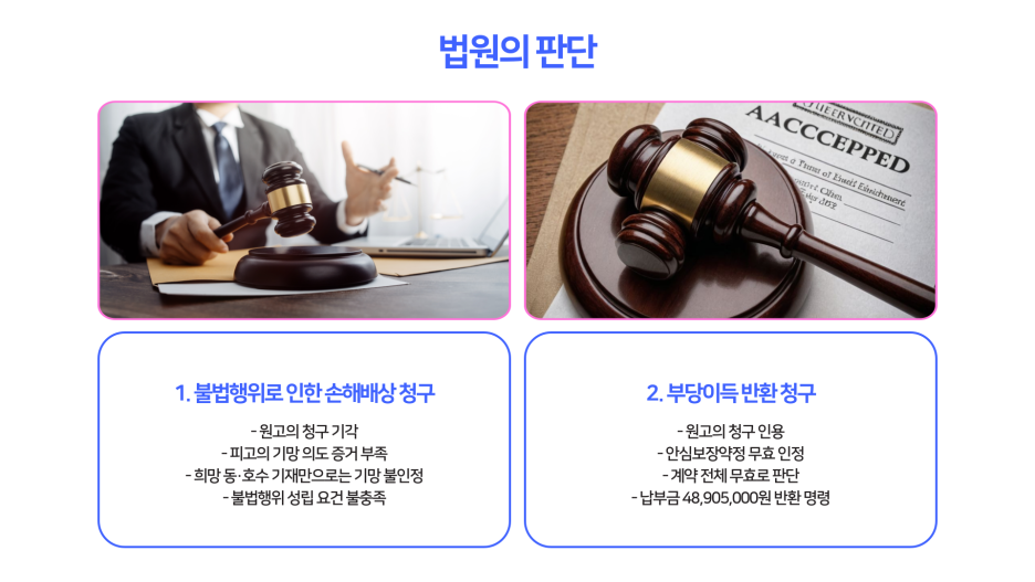 따라서 법원은 계약 자체가 무효이며, 이미 납부한 분담금은 부당이득으로 반환되어야 한다고 판단했습니다.