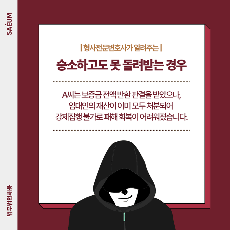 이런 경우, 민사소송에서 승소하더라도 임대인의 재산이 이미 사라진 뒤라면 실질적인 회수가 불가능합니다.