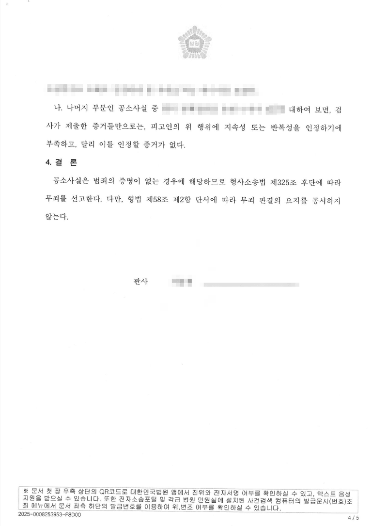 제 속마음으론 무죄 선고가 내려지지 않겠느냐는 기대를 하였는데요.