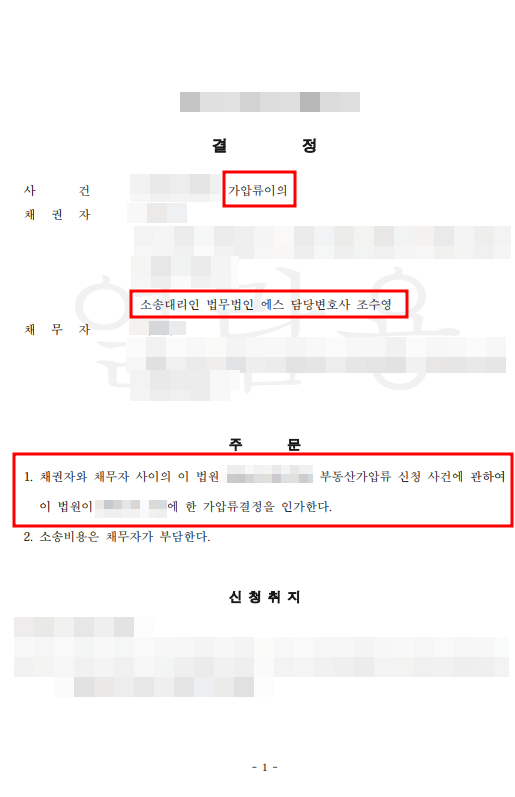 그 결과 법원에서도 저희 측 가압류 신청이 합당하다는 취지의 인가결정을 내렸고, 다행히 저희 의뢰인은 재산을 안전히 지킬 수 있었습니다.