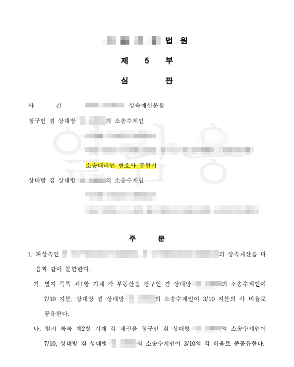 이를 고려해 의뢰인에게 더 많은 상속분이