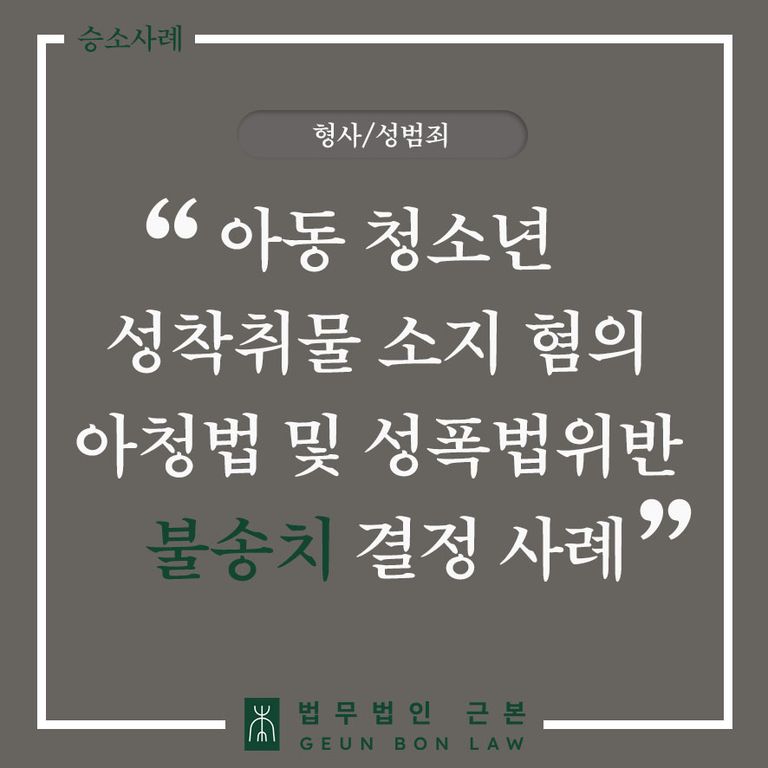 - 아청법 성착취물 음란영상 구매 및 소지 - 아동청소년의성보호에관한법률 성폭법 위반 불송치 변호사 성공사례