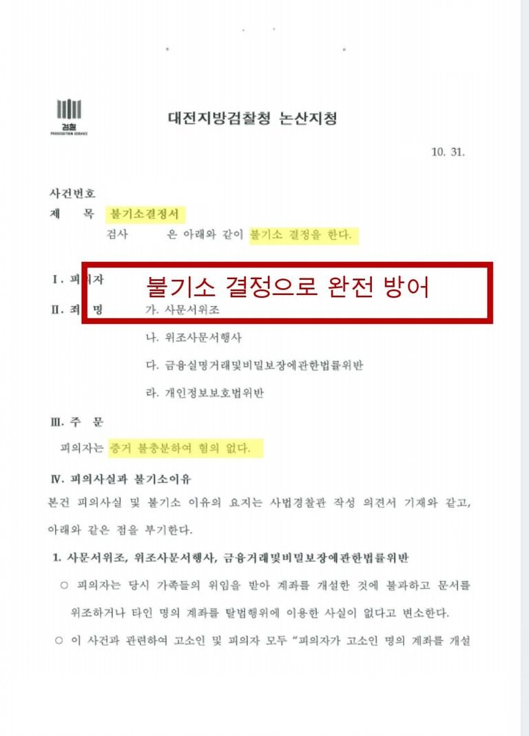#사문서위조불기소 #금융실명법위반 #혐의없음승소 #인천형사변호사 #법무법인테오 #불기소결정서 #문서위조무죄 #개인정보보호법위반