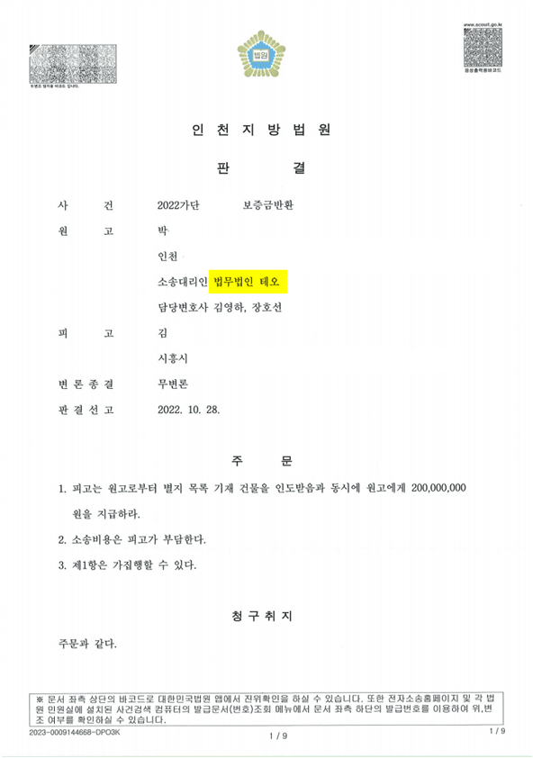 피고는 집을 매매할 계획이니 집이 팔리면 보증금을 주겠다며 보증금 반환을 미뤄왔습니다.