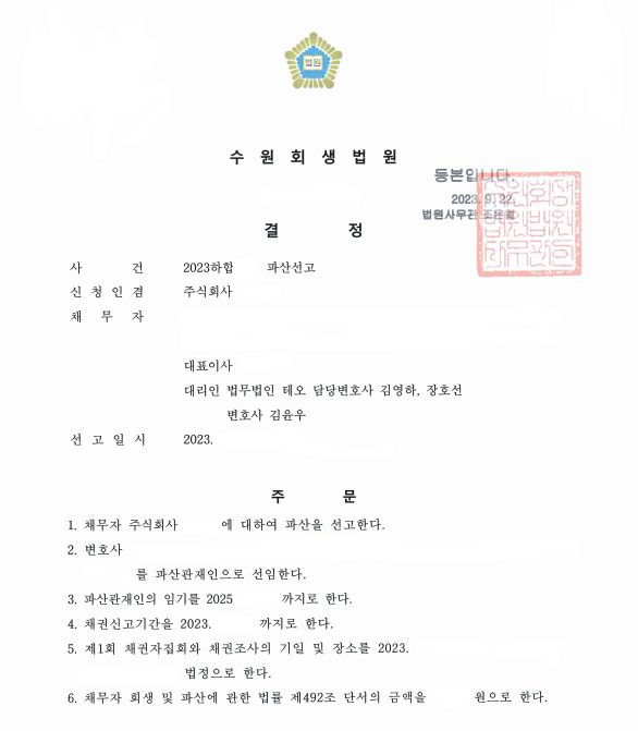 법무법인 테오의 법인 파산 성공사례를 소개드립니다.
