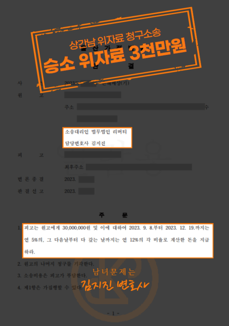 상간자 소송 손해배상 승소사례, 위자료 3천만원