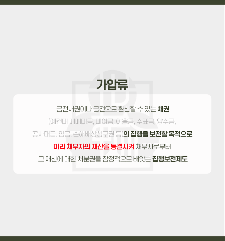 오늘은 문정법조타운변호사가 부당한 가압류를 해제하는 방법과 성공사례를 소개해 드리려고 합니다. 가압류는 아시다시피 본안소송에 들어가기 전에 진행하는 보전 절차 중 하나입니다. 채권자는 채무자가 돈을 갚지 않는 상황에서 채무자가 나중에 갚아야 할 돈을 빼돌리는 것을 막기 위해 가압류를 집행할 수 있는데요. 이를 통해 채무자의 당장의 현금흐름을 막을 수 있기 때문에 상대방을 압박하기 위한 수단이 되기도 합니다.