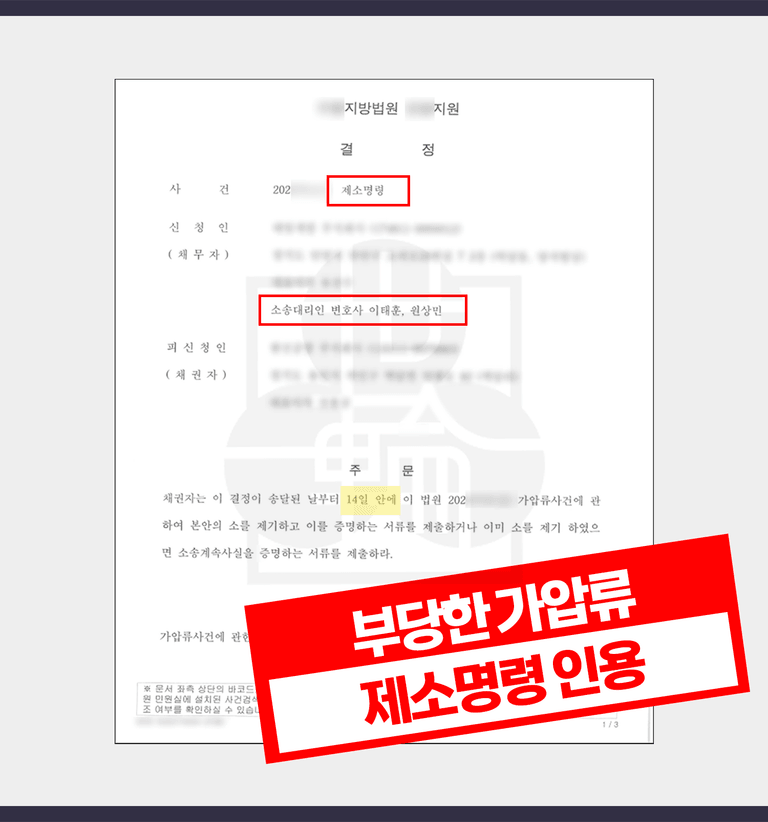 가압류는 소명자료만 있으면 비교적 쉽게 결정 내려집니다. 의뢰인 A 씨처럼 모든 재산에 압류 당한 채 시간만 흐른다면 일상 속 엄청난 불편함만 지속될 뿐인데요. 최대한 빠르게 불편함에서 벗어나려면, 해제를 위한 법적 조치를 취해야 합니다.