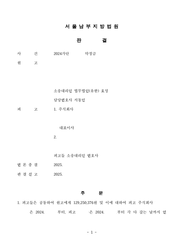그러나 피고 및 피고 법인은 이를 이행하지 아니하였고 이에 의뢰인은 저를 찾아오셨습니다.