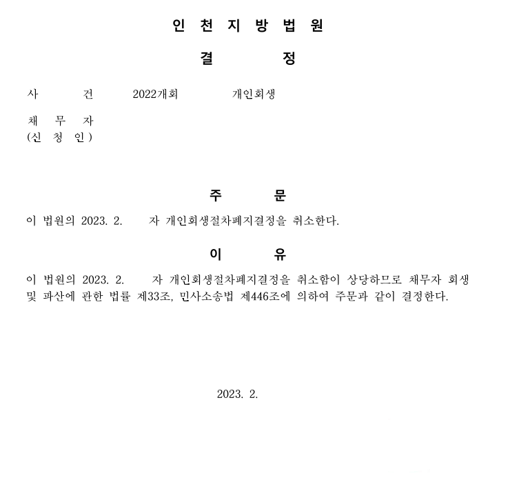 위 조치가 받아들여져 결국 폐지되었던 회생절차가 재개되었습니다.