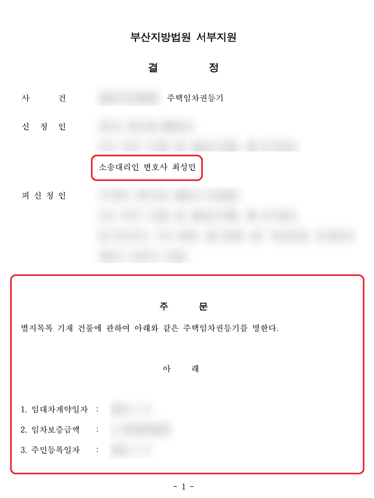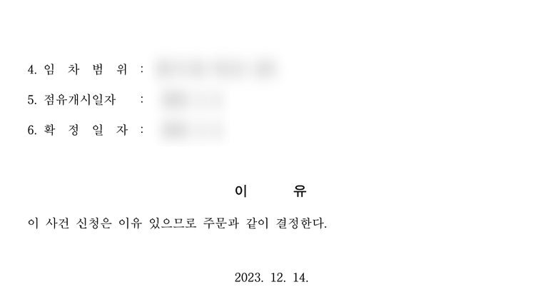 아래는 임차권등기명령을 진행하여 하루만에 인용결정을 받은 사례입니다.