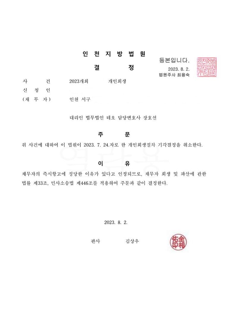 이 사건 의뢰인은 회생법원의 보정명령에 따라 성실히 보정에 임하였으나