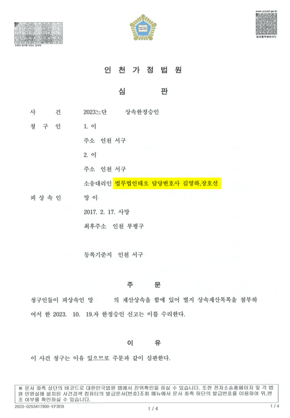 ![[한정승인] 사망 6년만에 신청된 특별한정승인 사례](/_next/image?url=https%3A%2F%2Fd2ai3ajp99ywjy.cloudfront.net%2Fassets%2Fimages%2Fpost%2Fcase_title.jpg&w=3840&q=75)