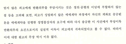 4. 재판부는 박종진 변호사의 주장을 받아들여, '전제척인 거래과정에 비추어 보았을 때 의뢰인에게 부당이득을 반환시키는 일이 정의와 형평의 관념에 부합하지 않는다'는 취지로 의뢰인의 손을 들어 주었습니다.