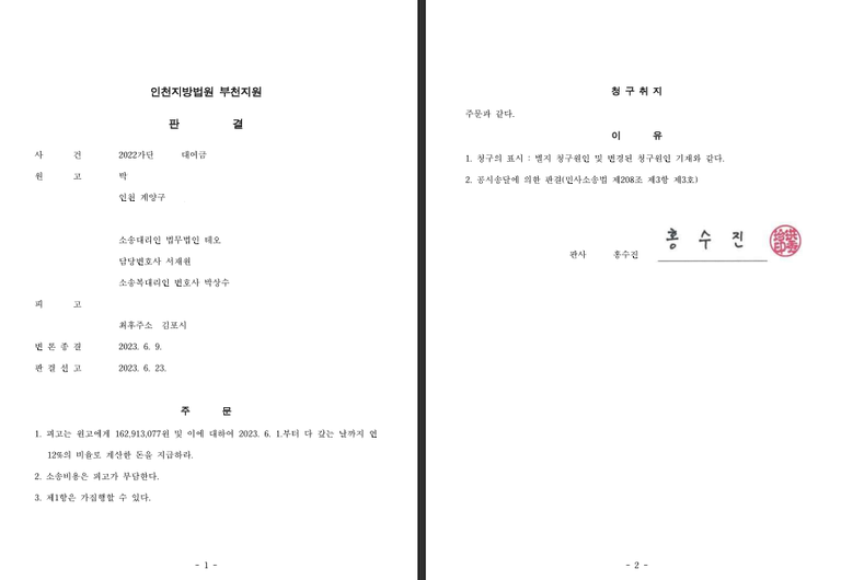 공시송달에 의한 판결로 승소하게 되었습니다.