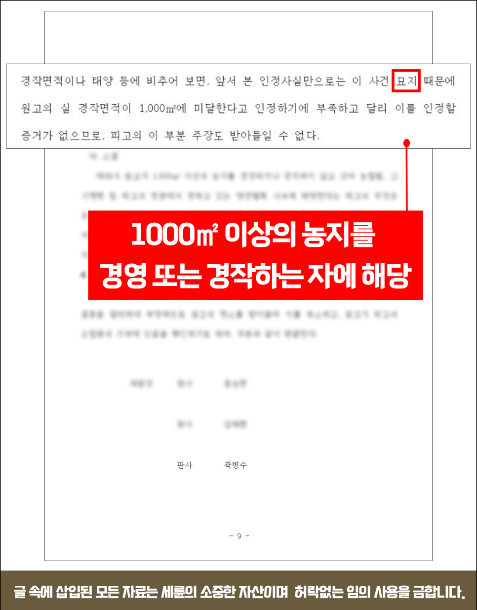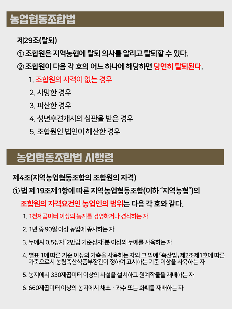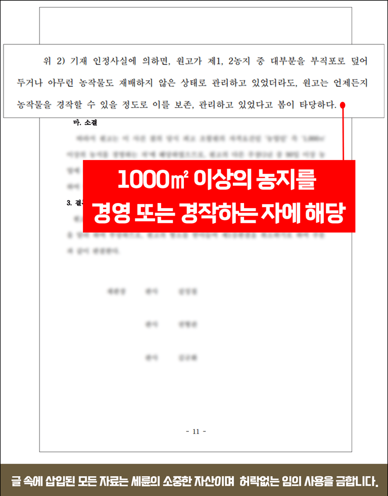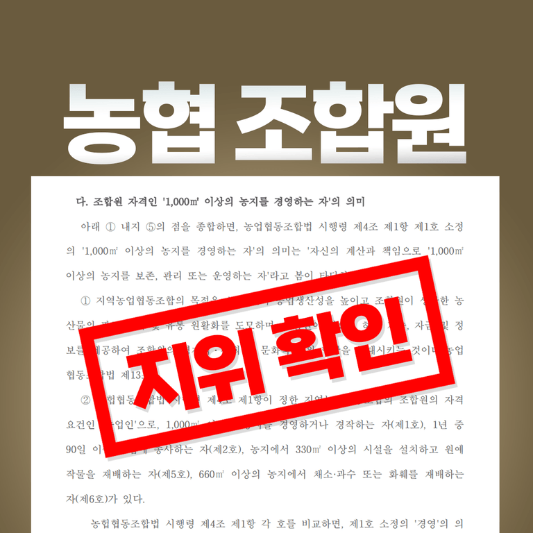 오늘은 조합원 가입의 조건 중 ▲1,000㎡ 이상의 농지를 경영하는 자 요건 미달로 법적 분쟁이 발생한 경우에 대해 세륜이 말씀드리겠습니다.