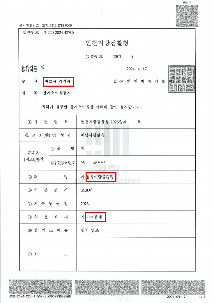 기소유예 처분 받음으로써 비자에 아무런 문제 없이 형사처벌도 없이 사건이 잘 마무리 될 수 있어서 저희로서도 매우 뿌듯한 사건이었습니다.