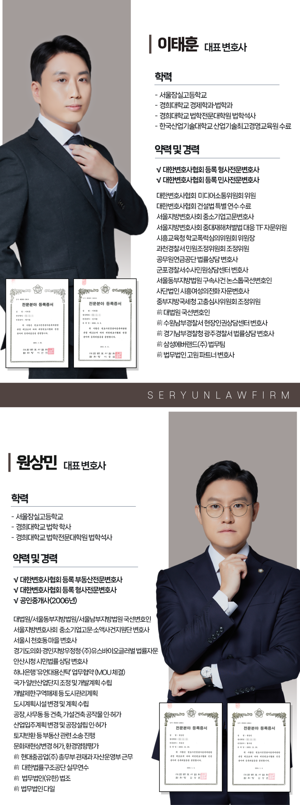 저희 부동산전문변호사 세륜은 공인중개사 및 대기업 인허가 업무의 경력을 갖추고, 다년간 수건의 부동산사건을 대리하여 대한변호사협회 등록 부동산전문 변호사로 등록된 부동산전문 변호사가 직접 사건을 처리하고 있습니다.
