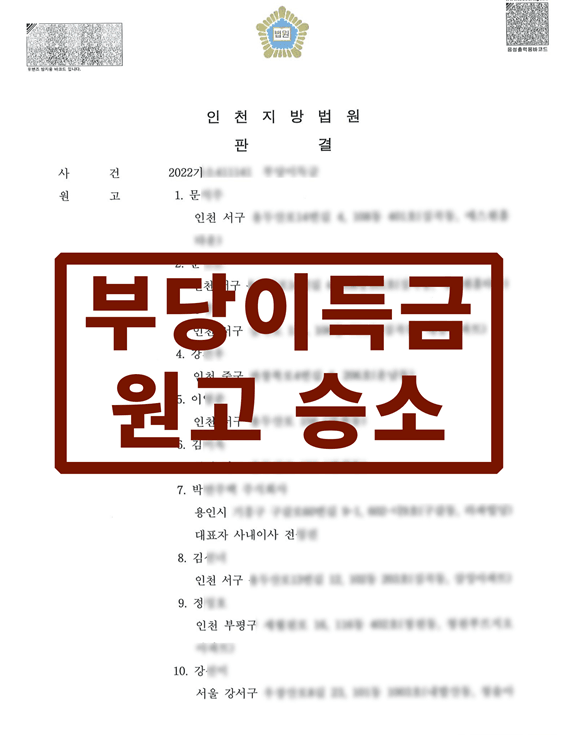 원고들은 이 사건 108동의 소유자들이고 피고들은 이 사건 107동의 소유자들입니다. 이 사건 108동과 107동 사이의 하수 오수 공동관로에서 지속적으로 하수 및 오수가 역류하여 원고들은 이 문제를 해결하고자 고압세척 및 맨홀탐색 작업으로 총 3,640,000원을 지급하였습니다. 원고들과 피고들은 구청 주택과 공무원들과 함께 위 비용에 대한 합의를 진행하였고, 피고들은 위 비용을 공동부담하는 것에 동의하고 인적사항을 적고 서명하였습니다. 피고들은 합의한 바와 달리 원고들에게 위 비용 일체를 지급하지 아니하였고, 공동으로 사용하는 하수관로를 원고들의 비용으로 고압세척한 바, 피고들은 위 비용의 절반에 해당하는 금원 1,820,000원 전부를 이행할 의무를 지므로 부당이득금 청구소송을 제기하였습니다.