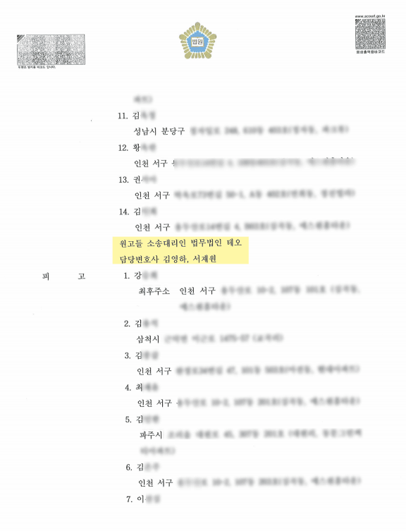 본 사건의 경우 원고와 피고가 모두 10명이 넘는 사건이라 사실관계를 확인하고 피고들에게 소송서류를 송달시키는 부분이 관건이었습니다.