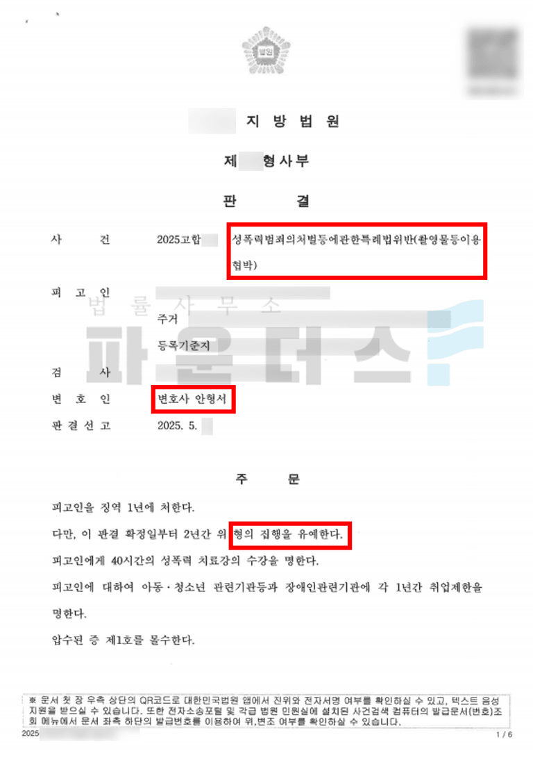 그 결과 의뢰인은 피해자의 가슴사진과 성관계 영상을 인스타에 업로드하겠다 협박한 촬영물등이용협박 사건에 있어 집행유예 판결을 받아 실형 위기를 면하며 최상의 결과를 받을 수 있었습니다.