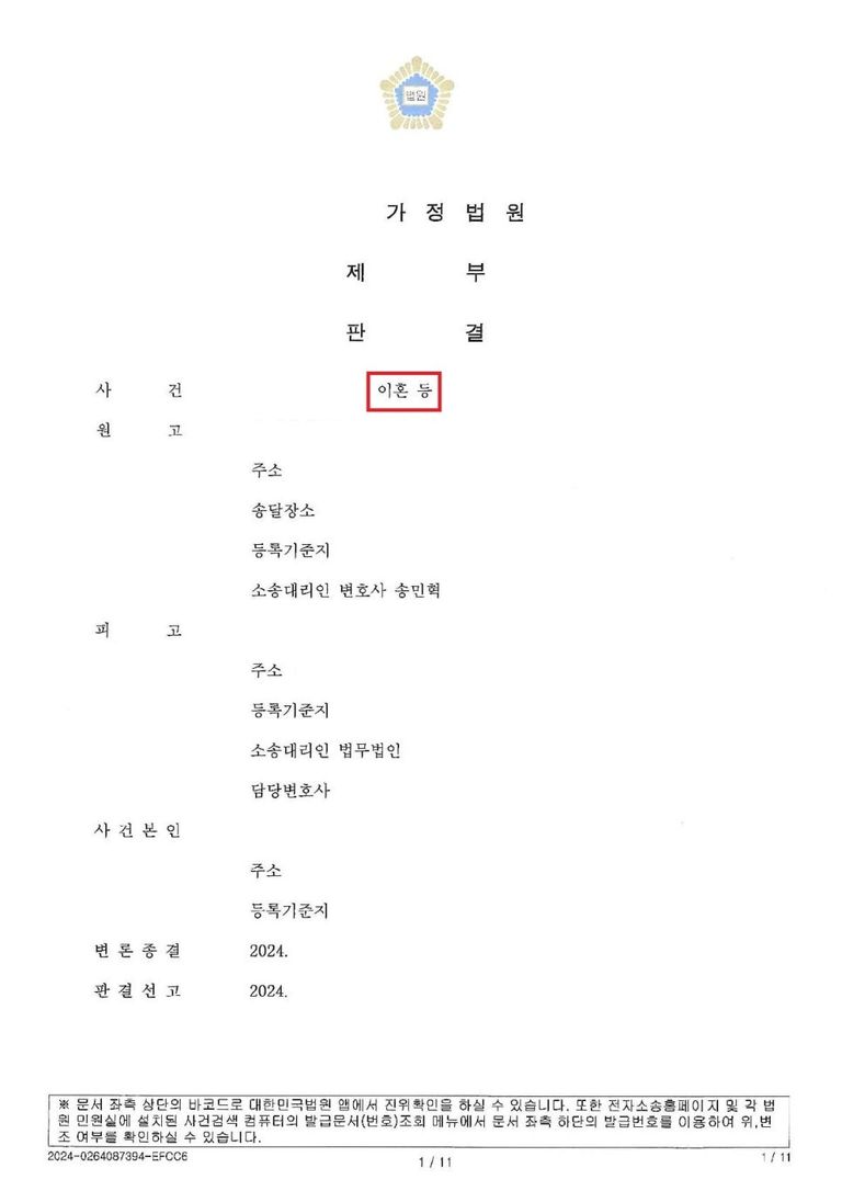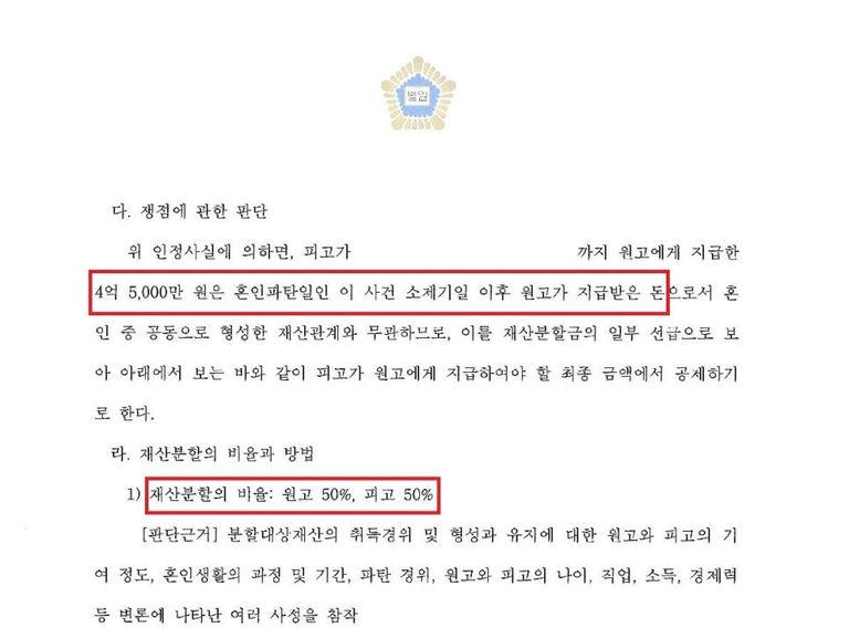판결로 받은 4억 4천만 원을 포함한 9억 가량의 재산분할 결정을 받으며