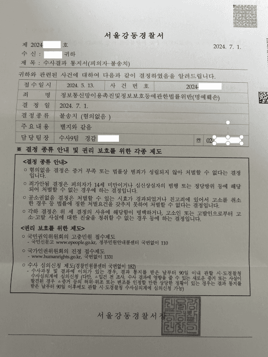 본 변호인의 적극적인 변론과 조력으로 의뢰인은 혐의에 대한 가장 유리한 결과인 불송치결정(혐의없음)을 받았으며 상대방이 의뢰인에 대한 명예훼손 및 모욕적인 게시글을 스스로 삭제하게 하여 의뢰인에게 발생할 추가적 손해를 막을 수 있었습니다.