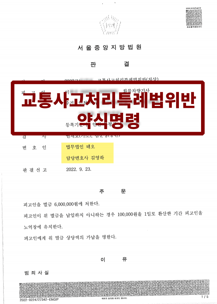 피해자가 상해가 중하기 때문에 의뢰인의 과실정도가 어느정도인지에 따라 공판절차로 진행될지 아니면 약식명령으로 인한 벌금형으로 진행될지가 본 사건의 특이점이었습니다.
