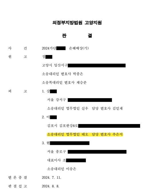 의뢰인에 대한 청구는 전부 기각되었고, 의뢰인은 상대 측에 소송비용까지 청구하여 변호사 선임비용을 보전받을 수 있었습니다.