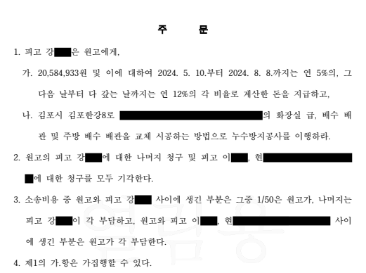 의뢰인은 임차인으로서 거주하던 아파트 아래층 소유자가 누수로 인한 손해가 발생하였는데, 그 귀책사유가 의뢰인에게 있다는 주장을 내세우며 의뢰인을 상대로 손해배상청구의 소를 제기한 상태였습니다.