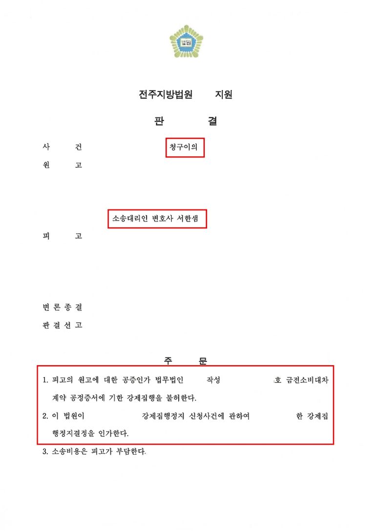 관할 법원에서는 한샘의 주장을 받아들여 이 사건 공정증서에 기한 강제집행은 불허되어야 한다고 판단하였습니다.