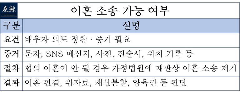'배우자의 부정한 행위'를 근거로 이혼 소송을 진행할 수 있습니다.