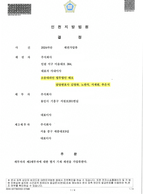 법무법인 테오의 조력을 통하여 신속한 채권가압류가 이루어 질 수 있었습니다.