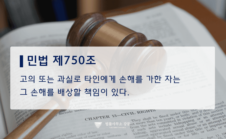 민법 제750조는 “고의 또는 과실로 타인에게 손해를 가한 자는 그 손해를 배상할 책임이 있다”고 규정합니다.