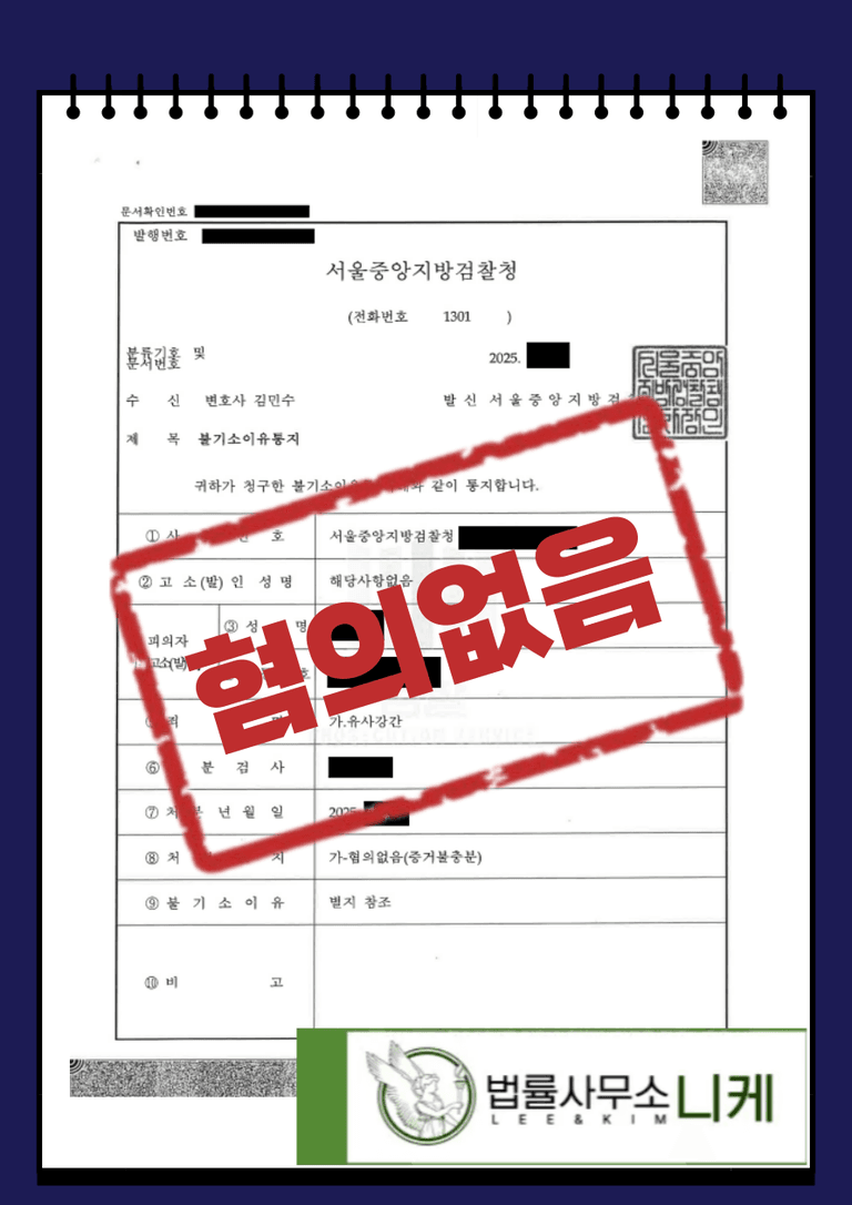 그 후 의뢰인은 이대로 혼자 사건을 진행하면 불리해질 것 같다는 생각이 들었고, 결국 무혐의를 입증하기 위해 법률사무소 니케에 도움을 요청하게 되었습니다.