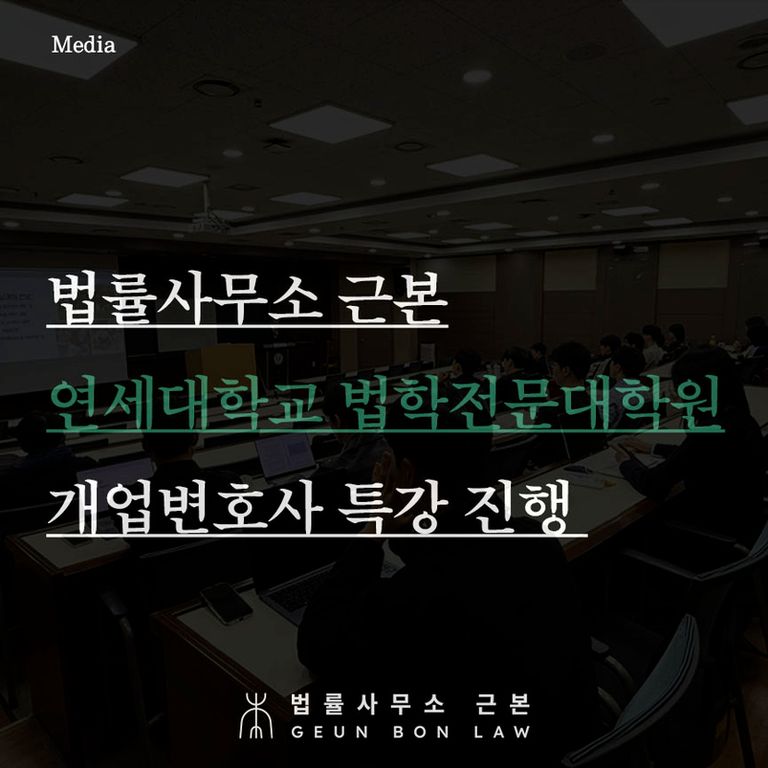- 법무법인 근본, 연세대학교 법학전문대학원(로스쿨) 개업변호사 특강 진행