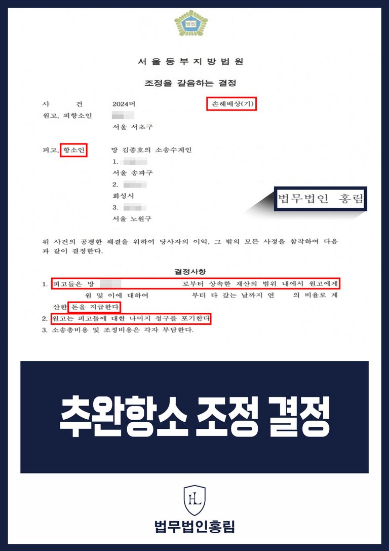 이러한 결과는 법무법인 홍림이 주도한 추완항소 조정 결정 전략의 성과로 평가됩니다.
